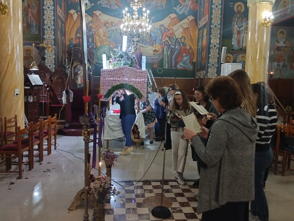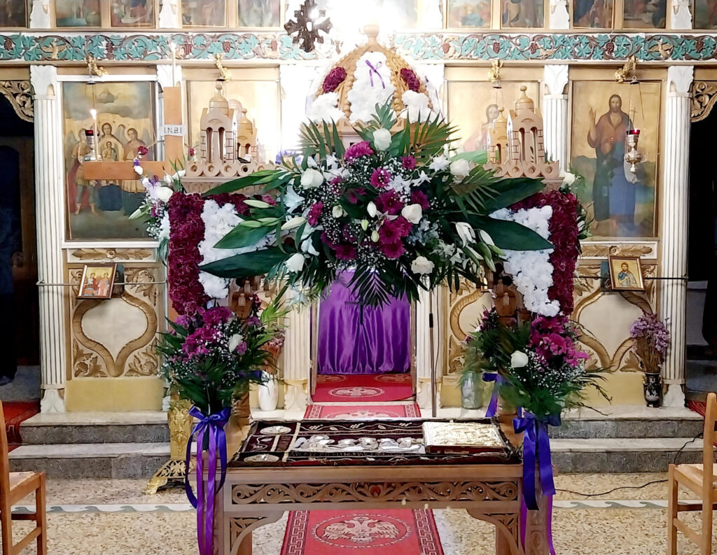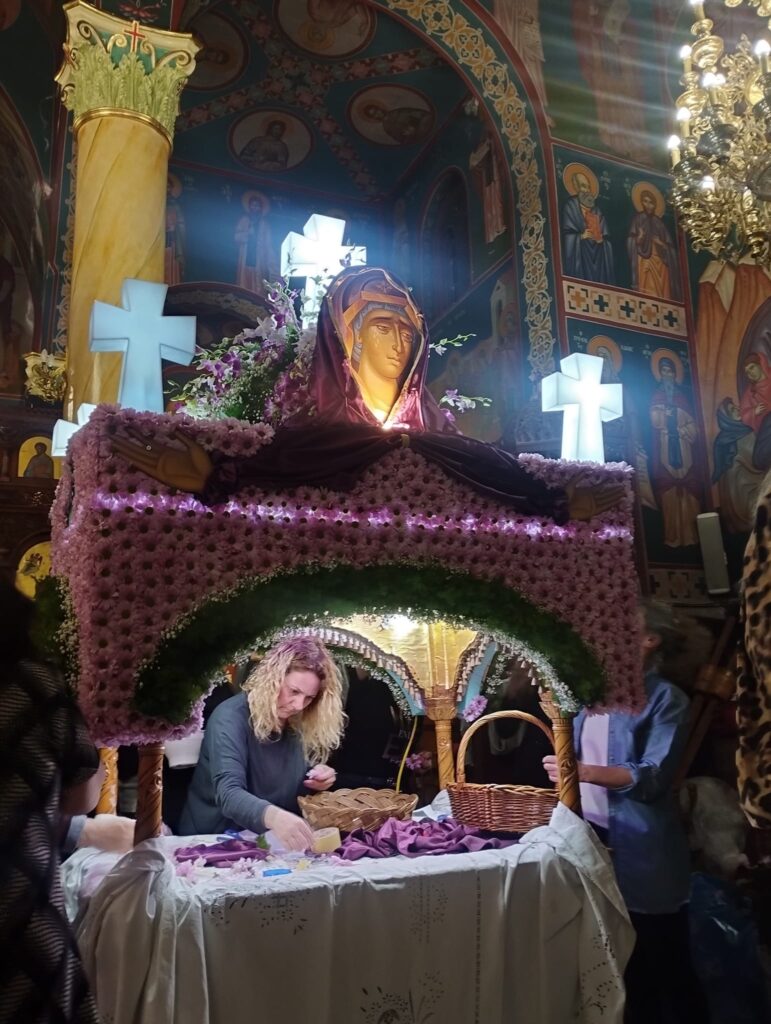 Ο στολισμός του Επιταφίου του Ιερού Ναού του Αγίου Αθανασίου Αμφιλοχίας