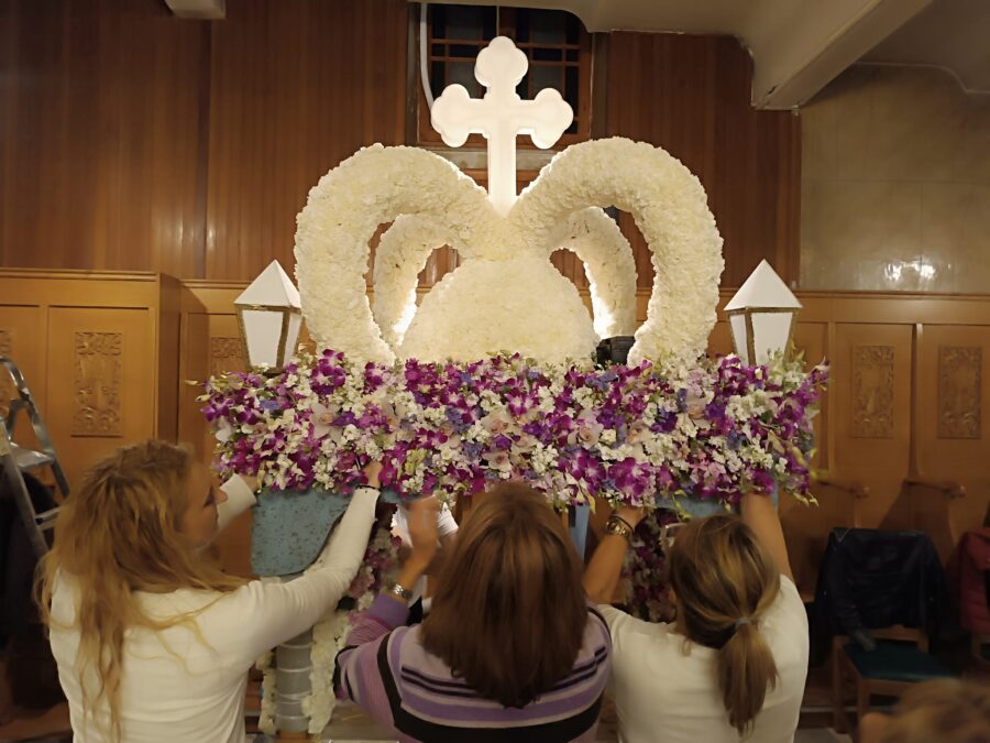 Ο στολισμός του Επιταφίου του Ιερού Ναού του Αγίου Αθανασίου Αμφιλοχίας
