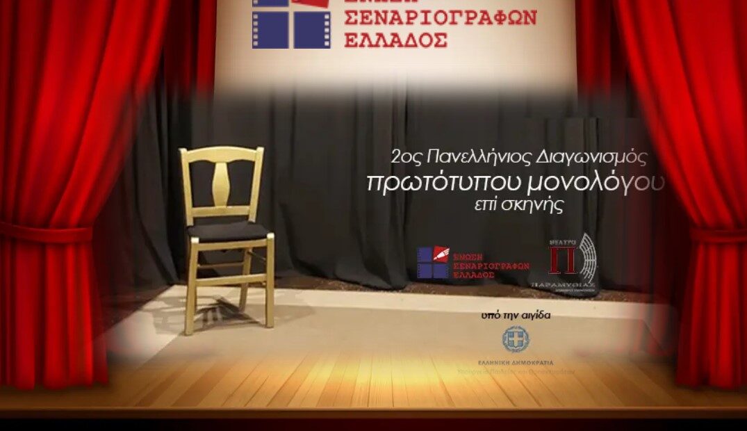 Συνεχίζονται έως τις 30 Μαρτίου 2023 οι αιτήσεις συμμετοχής στον 2ο Πανελλήνιο Διαγωνισμό Πρωτότυπων Μονολόγων επί σκηνής που πραγματοποιεί η Ένωση Σεναριογράφων Ελλάδος και τελεί υπό την αιγίδα του Υπουργείου Παιδείας και Θρησκευμάτων, του Δήμου Αμφιλοχίας καθώς και άλλων δήμων και πολιτιστικών φορέων από ολόκληρη την Ελλάδα.