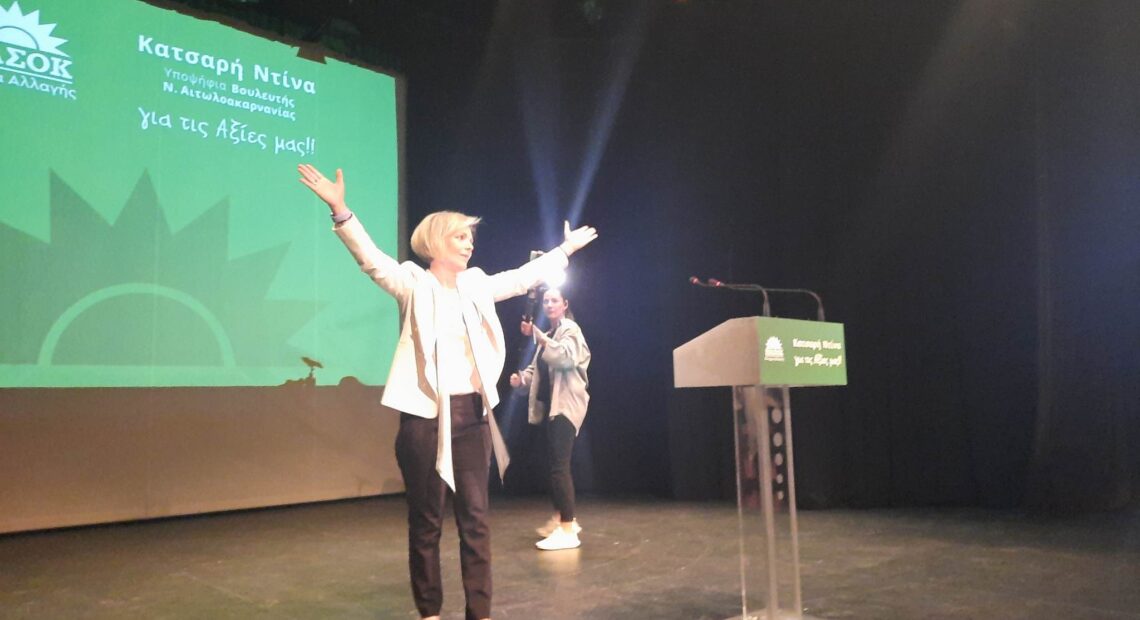 Με τα παραπάνω λόγια καρδιάς η υποψήφια βουλευτής Αιτωλοακαρνανίας του ΠΑΣΟΚ-ΚΙΝΑΛ, Ντίνα Κατσαρή ζήτησε ψήφο εμπιστοσύνης από τους εκατοντάδες Αιτωλοακαρνάνες που παρευρέθησαν στη μεγάλη προεκλογική της συγκέντρωση, χθες Τετάρτη, 3 Μαΐου, στην αίθουσα του ΔΗΠΕΘΕ Αγρινίου.