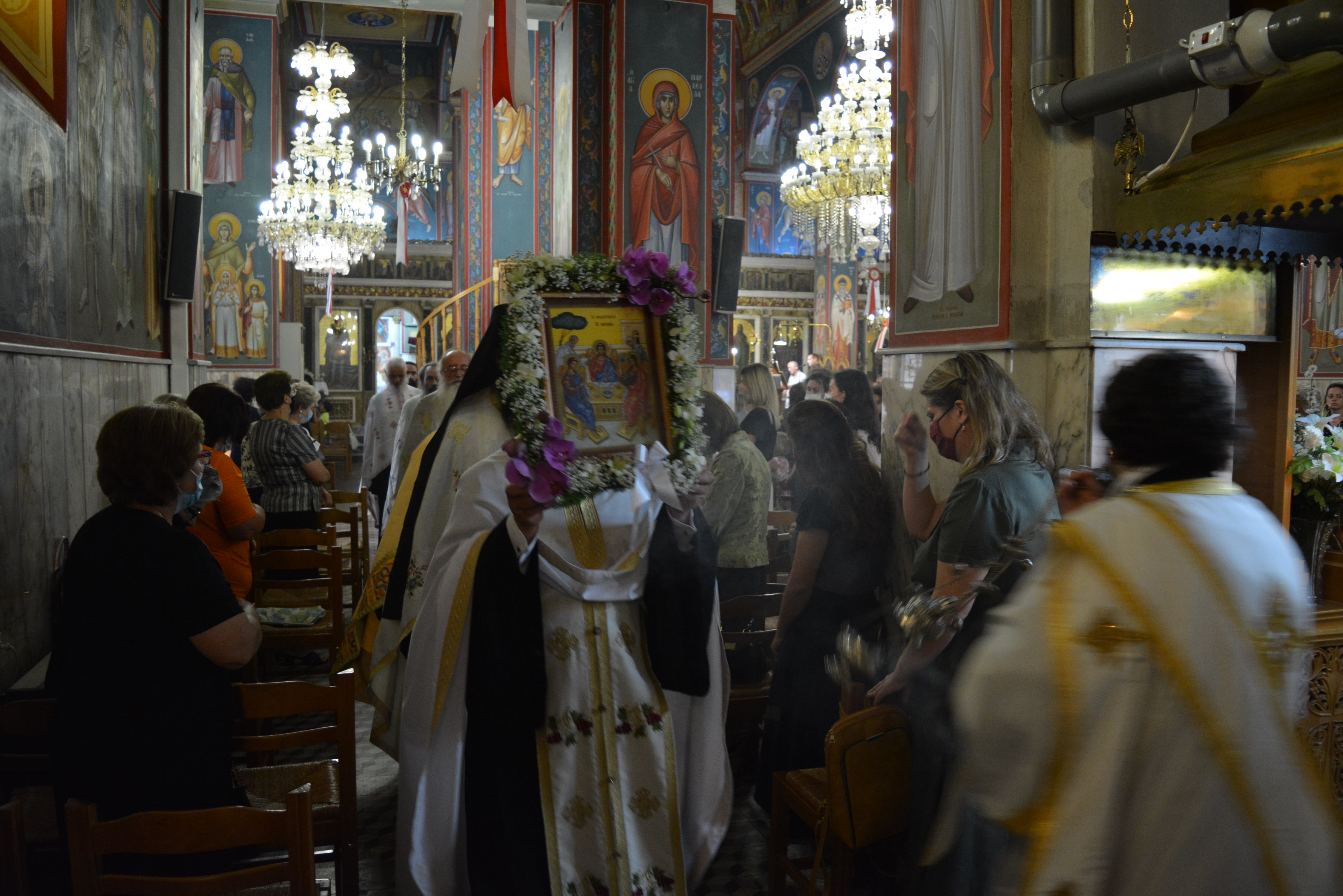 Φέτος δεν έγινε η καθιερωμένη λιτάνευση της Ιερής Εικόνας της Αγίας Τριάδος λόγω των μέτρων προς αποφυγή της νόσου covid-19.