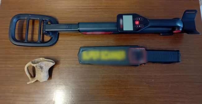 Σε έρευνα που πραγματοποιήθηκε από τους αστυνομικούς στην οικία του κατηγορούμενου σε περιοχή του Αιτωλικού βρέθηκαν και κατασχέθηκαν -2- ηλεκτρονικοί ανιχνευτές μετάλλων και -1- τμήμα πήλινου αμφορέα.