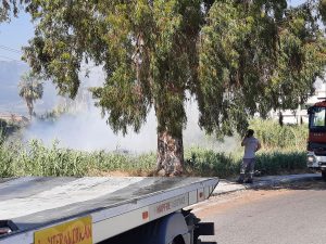 Κινητοποίση της Πυροσβεστικης Μεσολογγίου και της αστυνομίας για φωτιά που εκδηλώθηκε νωρίτερο σε χαμηλή βλάστηση, χόρτα και καλαμιές, κοντά στον Ι.Ν Αποστόλου Παύλου.