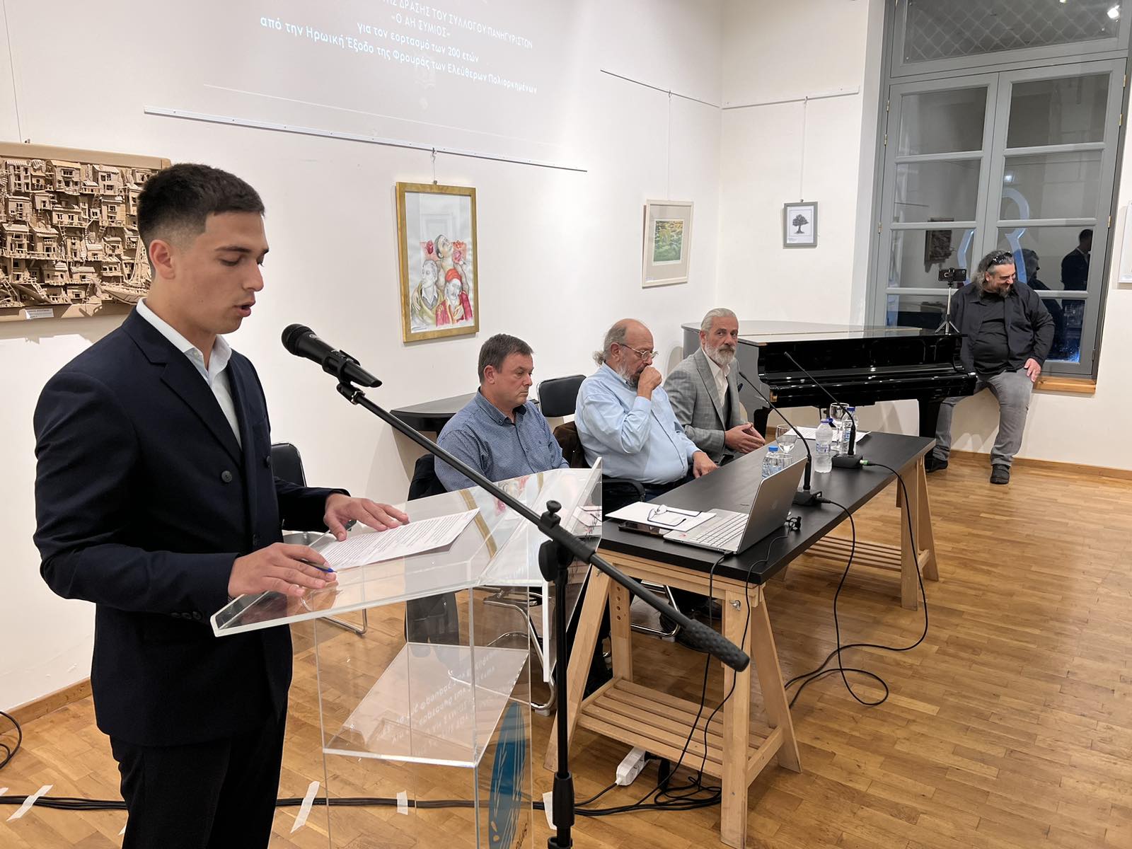 Την Τετάρτη 30 Οκτωβρίου 2024 και ώρα 7.00 μ.μ. ο Σύλλογος Πανηγυριστών «Ο ΑΗ ΣΥΜΙΟΣ» σε ανοιχτή εκδήλωση που πραγματοποιήθηκε στο κτήριο Χρυσόγελου στο Μεσολόγγι, παρουσία του Αντιδημάρχου Πολιτισμού, Μουσείων & Βιώσιμου Τουρισμού κ. Δημητρίου Πετρόπουλου, του εκπροσώπου του Σεβασμιοτάτου Μητροπολίτη Αιτωλίας και Ακαρνανίας Πρωτοπρεσβυτέρου Ανδρέα Καππέ και εκπροσώπων συλλόγων και φορέων της πόλης, παρουσίασε την πρόταση Δράσης που έχει σχεδιάσει ενόψει του εορτασμού της επετείου των 200 ετών από την Έξοδο της Ηρωικής Φρουράς των Ελευθέρων Πολιορκημένων του Μεσολογγίου, με τίτλο: «Το πανηγύρι του Άη Συμιού: η ζωντανή ιστορική μνήμη της Εξόδου 200 χρόνια μετά».