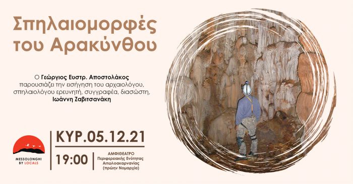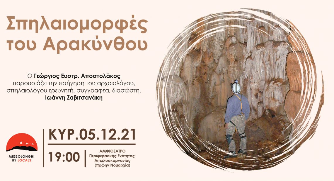 Την Κυριακή 5 Δεκεμβρίου, στις 19:00, το Messolonghi by Locals παρουσιάζει το ερευνητικό έργο του Ιωάννη Ζαβιτσανάκη – αρχαιολόγου, σπηλαιολόγου ερευνητής, σχετικά με τις σπηλαιομορφές του Αρακύνθου και τον Άγιο Νικόλαο Κρεμαστό.