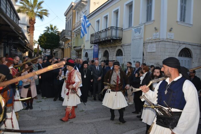 Κλείνοντας την εκδήλωση ο Μητροπολίτης Αιτωλίας και Ακαρνανίας κ. Δαμασκηνός ανέφερε ότι μέσα στην ιστορική διαδρομή του Ελληνικού Έθνους συνδυάζονται η συγκίνηση των αγώνων και η υπερηφάνεια της ανδρείας. Καλωσόρισε το Δήμαρχο Τριπόλεως στην Ιερά Πόλη του Μεσολογγίου και στην Ιερά Μητρόπολη Αιτωλίας και Ακαρνανίας, λέγοντας, ότι είναι ένας τόπος όχι μόνο θυσίας ηρώων, αλλά και μαρτύρων και αγίων της πίστεως, με τελευταίο τον άγιο Καλλίνικο, Επίσκοπο Εδέσσης. «Ο μοναδικός συνδυασμός αυτού του τόπου είναι ότι γεννάει ήρωες και Αγίους και αυτό καθιστά αυθεντική την ελληνική συνείδηση στον τόπο μας» ανέφερε μεταξύ άλλων ο Σεβασμιώτατος.