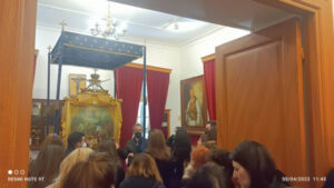Την Τετάρτη 05/04/2023 πραγματοποιήθηκε προγραμματισμένη επίσκεψη του προσωπικού του ΚΕ.Δ.Α.Σ.Υ. Αιτωλοακαρνανίας και των μελών των Επιτροπών Διεπιστημονικής Υποστήριξης (Ε.Δ.Υ) Αιτωλοακαρνανίας στο Μουσείο Ιστορίας και Τέχνης – Πινακοθήκη, πλατεία Μάρκου Μπότσαρη στο Μεσολόγγι, ενόψει των Εορτών Εξόδου 2023. Οι εκπαιδευτικοί αρχικά είδαν την σπουδαία έκθεση με τίτλο: «Το 1821 αποτυπωμένο στο ξύλο…με φωτιά!» του Δημήτρη Δετσαρίδη με έργα εμπνευσμένα από το 1821. Στον πάνω όροφο, στην αίθουσα που είναι αφιερωμένη στην πόλη του Μεσολογγίου υπάρχει αντίγραφο της εικόνας « Η Έξοδος του Μεσολογγίου» του Θεόδωρου Βρυζάκη από τον Άγγελο Κασόλα, καθώς και τα όπλα του οπλαρχηγού Δημητρίου Μακρή. Ακόμα μπορεί κανείς να δει γκραβούρες, χάρτες, νομίσματα, μετάλλια, παραδοσιακές ενδυμασίες. Επίσης είδαν αντίγραφα Ελλήνων οπλαρχηγών, τον πίνακα «Η Ελλάδα στα ερείπια του Μεσολογγίου» – αντίγραφο – του Eugène Delacroix, το πρωτότυπο έργο του Γάλλου ζωγράφου François-Émile de Lansac, «Η αυτοθυσία της μάνας», καθώς και το αντίγραφο του πίνακα «Η Επίθεση του Ιμπραήμ» του Giuseppe Pietro Mazzola, από τον Ιωάννη Κασόλα, βασισμένο σε χαλκογραφία Jean-Charles Langlois. Η υποδοχή έγινε από τον Πρόεδρο του Πνευματικού Κέντρου Ιεράς Πόλεως του Μεσολογγίου Νίκο Χαντζή και η ξενάγηση έγινε από τον διπλωματούχο ξεναγό Γιώργο Αποστολάκο. Στην επίσκεψη παραβρέθηκαν ο Διευθυντής Πρωτοβάθμιας Εκπαίδευσης Νίκος Δελέγκος καθώς και ο Πρόεδρος Επιτροπής Παιδείας Γιώργος Σωτηρακόπουλος. Κατά την διάρκεια της επίσκεψης ο απερχόμενος Προϊστάμενος του ΚΕ.Δ.Α.Σ.Υ. Αιτωλοακαρνανίας Αθανάσιος Ρισβάς δέχτηκε ως αναμνηστικό δώρο βιβλία με την ιστορία της Ιεράς Πόλης για την προσφορά του στο χώρο της εκπαίδευσης και την άψογη συνεργασία που όλοι είχαν μαζί του εδώ και τέσσερα χρόνια. Του ευχόμαστε τα καλύτερα στη νέα θέση εργασίας του ως Συμβούλου Ειδικής Αγωγής και Ενταξιακής Εκπαίδευσηςμε έδρα τη Διεύθυνση Π.Ε. Αιτωλοακαρνανίας και περιοχή αρμοδιότητας του τις Διευθύνσεις Δ.Ε. και Π.Ε. Αιτωλοακαρνανίας, Λευκάδας και Ευρυτανίας.