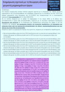 Τέλος, ενημερώνει τα μέλη του για την θεώρηση αδειών χειριστών μηχανημάτων έργου.
