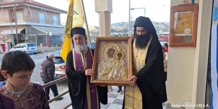 Την Ιερά και Θαυματουργό Εικόνα της Υπεραγίας Θεοτόκου της Αρμενιώτισσας, από την Ιερά Μητρόπολη Λαρίσης και Τυρνάβου υποδέχθηκε η Ιερά Πόλη του Μεσολογγίου, στον Ιερό Ναό του Αγίου Αθανασίου, το απόγευμα της Δευτέρας 17ης Μαρτίου 2025.