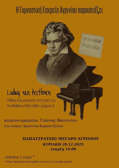 Η Γυμναστική Εταιρεία Αγρινίου παρουσιάζει και σας προσκαλεί σε μια παράσταση-αποκάλυψη, την Κυριακή 28/12/2025 στις 19.00 στο Παπαστράτειο Μέγαρο Αγρινίου.