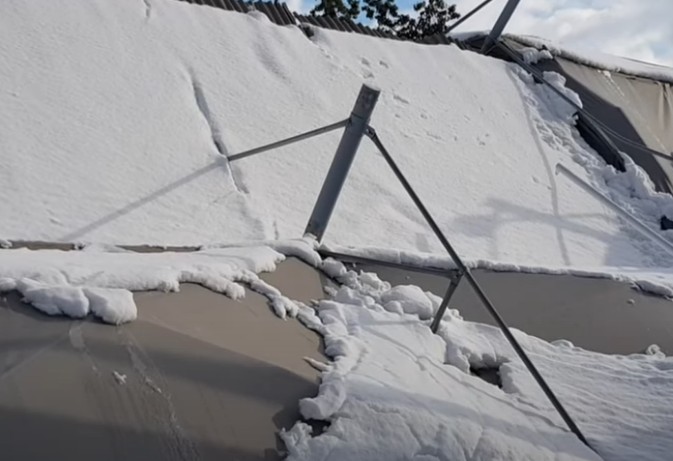 Στην Ιερά οδό στο Χαϊδάρι, σε ένα βενζινάδικο το βάρος του χιονιού ήταν τέτοιο, που προκάλεσε την κατάρρευση του εξωτερικού σκέπαστρου.