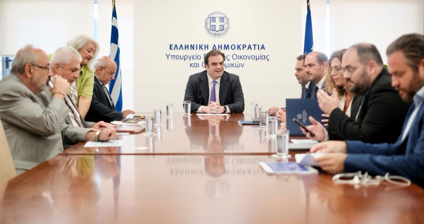 Συνάντηση με το προεδρείο της ΑΣΠΕ πραγματοποιήθηκε σήμερα στο Υπουργείο Εθνικής Οικονομίας και Οικονομικών, υπό τον Υπουργό Κυριάκο Πιερρακάκη. Στη συνάντηση συμμετείχαν οι Υφυπουργοί κ. Θ. Πετραλιάς και κ. Γ. Κώτσηρας, καθώς και η Γενική Γραμματέας Φορολογικής Πολιτικής κ. Χ. Μήλιου.