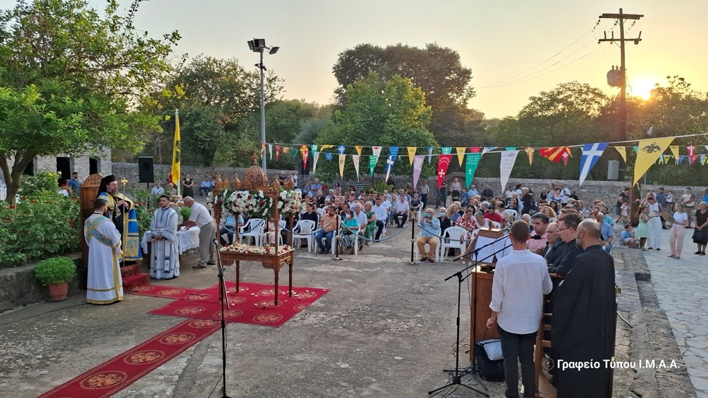 Ακολούθησε ο πανηγυρικός Εσπερινός και η ακολουθία των Εγκωμίων της Παναγίας, χοροστατούντος του Σεβασμιώτατου Ποιμενάρχου μας κ. Δαμασκηνού, με τη συμμετοχή πλήθους πιστών που κατέκλεισαν κυριολεκτικά κάθε χώρο της ιστορικής αυτής Ιεράς Μονής, μεταξύ των οποίων ο Δήμαρχος Ιεράς Πόλεως Μεσολογγίου κ. Σπυρίδων Διαμαντόπουλος, Δημοτικοί και Περιφερειακοί Σύμβουλοι και άλλοι εκπρόσωποι Συλλόγων και Φορέων.