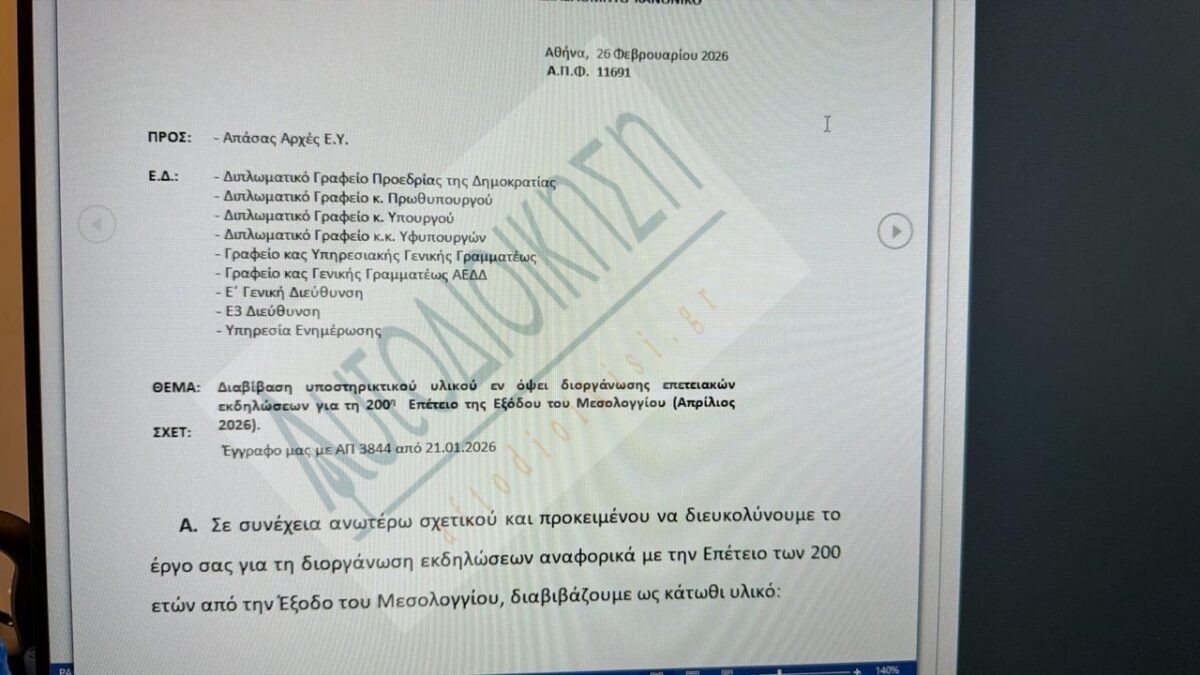 Στο πλαίσιο των εορτασμών για την επέτειο της ηρωικής πράξης που προσέδωσε στην πόλη τον Ιερό της χαρακτήρα. “Το 2026, η Ιερά Πόλη του Μεσολογγίου δεν περιορίζεται σε μια τυπική αναφορά στο παρελθόν. Αναλαμβάνει την ευθύνη να μετατρέψει τη μνήμη σε δημόσιο γεγονός, σε ζωντανό βίωμα και σε συλλογική εμπειρία με εθνική και διεθνή ακτινοβολία.” σημειώνει ο δήμαρχος στο ίδιο κείμενο.