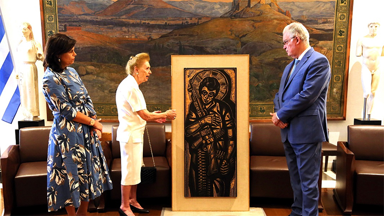 Η κόρη του, Ναταλία Μουστακλή, σχολιάζοντας την παρατήρηση του προέδρου της Βουλής για την αγιογραφική άποψη του χαρακτικού, ανέφερε ότι ο ίδιος ο Τάσσος είπε ότι «σε όλα του τα έργα ό,τι αποτυπώνεται δεν είναι η οργή, είναι η ανάγκη να παραμείνει ο άνθρωπος όρθιος».