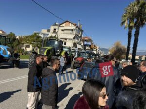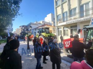 Στο Μεσολόγγι αγρότες και κτηνοτρόφοι μπήκαν με τα τρακτέρ και τα αγροτικά τους μηχανήματα στο κέντρο της πόλης, πραγματοποιώντας μηχανοκίνητη πορεία με κατάληξη στο Εργατικό Κέντρο.