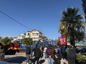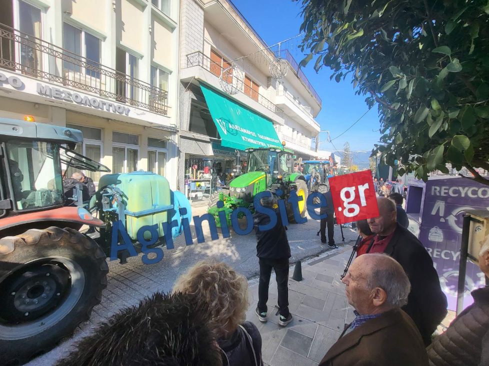 Στο Μεσολόγγι αγρότες και κτηνοτρόφοι μπήκαν με τα τρακτέρ και τα αγροτικά τους μηχανήματα στο κέντρο της πόλης, πραγματοποιώντας μηχανοκίνητη πορεία με κατάληξη στο Εργατικό Κέντρο.