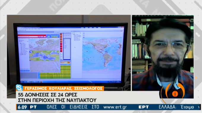 Καθησυχαστικός εμφανίστηκε στην εκπομπή «Από τις Έξι» στην ΕΡΤ ο σεισμολόγος Γεράσιμος Χουλιάρας αναφορικά με τις πολλαπλές σεισμικές δονήσεις, που έχουν σημειωθεί στην περιοχή της Ναυπάκτου τις τελευταίες ώρες.