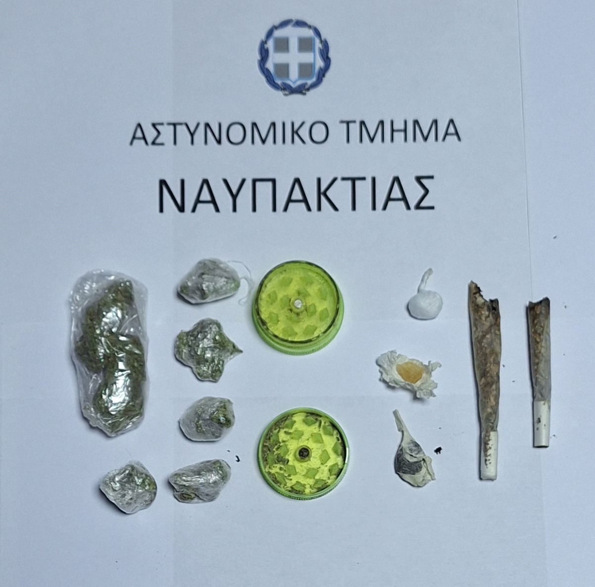 Σε έρευνα που πραγματοποιήθηκε στην οικία του συλληφθέντα σε περιοχή της Φωκίδας οι αστυνομικοί βρήκαν και κατέσχεσαν 7,7 γραμμάρια κάνναβης, 0,8 γραμμάρια κοκαΐνης, ένα τρίφτη και καπνικά είδη.