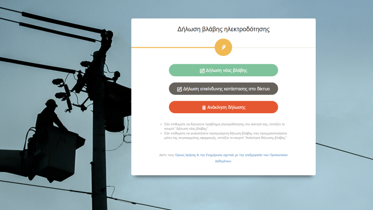 Έχετε βλάβη στην ηλεκτροδότησή σας; Πατήστε ΕΔΩ.