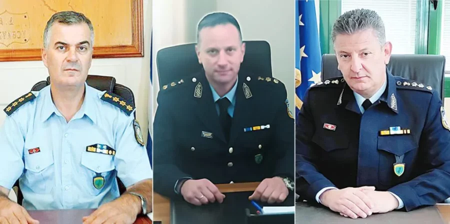 Οι αστυνομικοί διευθυντές Αχαΐας Θοδ. Τσάτσαρης, Αιτωλίας Απόστολος Καπνιάρης και Ακαρνανίας Δημήτρης Γαλαζούλας