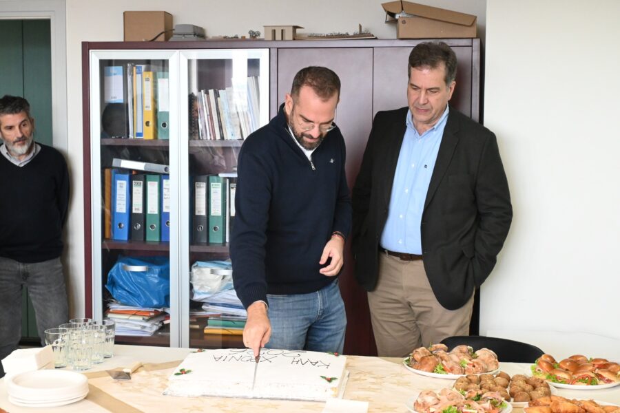 Σε κλίμα αισιοδοξίας, συνεργασίας και θετικών μηνυμάτων για τη νέα χρονιά, ο Περιφερειάρχης Δυτικής Ελλάδας Νεκτάριος Φαρμάκης παρευρέθηκε σήμερα στο Περιφερειακό Ταμείο Ανάπτυξης, όπου πραγματοποιήθηκε η καθιερωμένη κοπή της πρωτοχρονιάτικης πίτας.