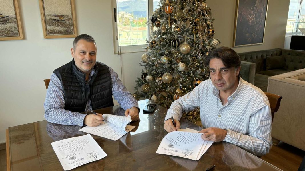Υπογράφηκε σήμερα, Δευτέρα 8 Δεκεμβρίου 2025, η σύμβαση για την υλοποίηση του έργου ηλεκτροφωτισμού του Δημοτικού Γηπέδου Ποδοσφαίρου στο Δ.Α.Κ. Μεσολογγίου, καθώς και του βοηθητικού προπονητικού γηπέδου, μεταξύ του Δημάρχου Ιεράς Πόλεως Μεσολογγίου, Σπύρου Διαμαντόπουλου, και του εκπροσώπου της αναδόχου εταιρείας.