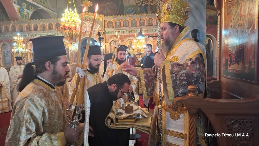 Κατά την διάρκεια της Θείας Λειτουργίας χειροτόνησε στον βαθμό του Διακόνου τον Μοναχό Ευσέβιο Ζαπαντιώτη, Αδελφό της Ιεράς Μονής Παναγίας Ελεούσης Κλεισούρας Αιτωλικού.