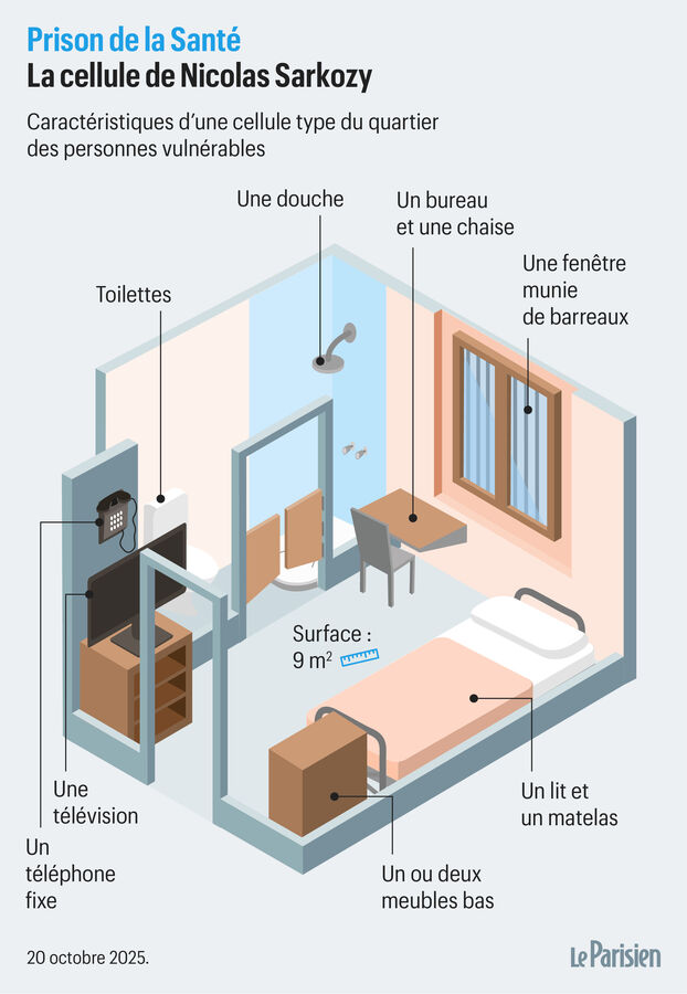 Ο Νικολά Σαρκοζί πέρασε τις πύλες της φυλακής Σαντέ, στο Παρίσι, το πρωί της Τρίτης. Λόγω των κινδύνων που συνεπάγεται η παρουσία του σε κανονικό κελί, κρατείται σε απομόνωση, σε ειδική πτέρυγα που διαθέτει δεκαπέντε κελιά, αφιερωμένη στην ασφάλεια συγκεκριμένων κρατουμένων.