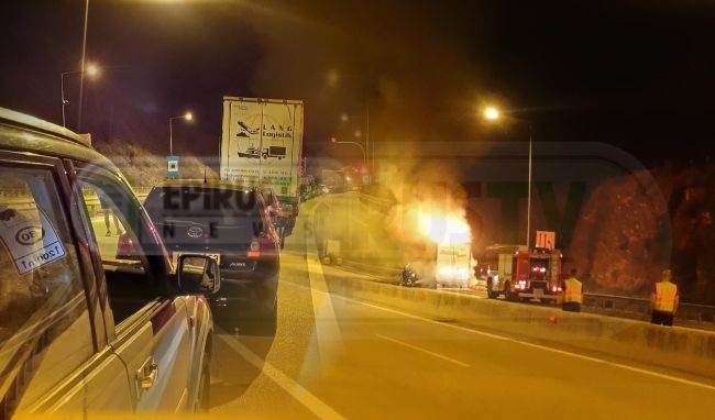 Συναγερμός σήμανε στην Πυροσβεστική λίγο πριν τα μεσάνυχτα όταν ξέσπασε φωτιά σε νταλίκα στη Εγνατία Οδό με κατεύθυνση τα Ιωάννινα κοντά στον κόμβο με την Ιόνια Οδό.