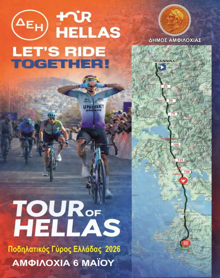 Ο Δήμος Αμφιλοχίας υποδέχεται την κορυφαία ποδηλατική διοργάνωση ΔΕΗ Tour of Hellas 2026 την Τετάρτη 6 Μαΐου 2026, φιλοξενώντας το 2ο Σπριντ Ευθείας του 1ου ετάπ Ιωάννινα – Αγρίνιο.