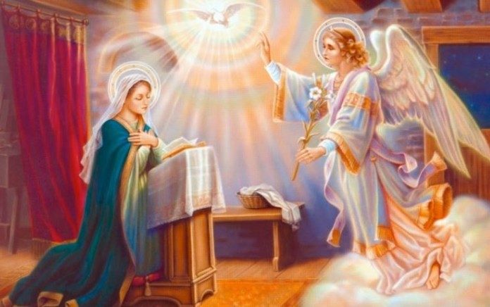 Ο άγιος Ιωάννης ο Χρυσόστομος στο λόγο του για την εορτή του Ευαγγελισμού αναφέρει τους λόγους για τους οποίους στάλθηκε προς την Παρθένο Μαρία ο Αρχάγγελος Γαβριήλ: « Στάλθηκε ο Γαβριήλ, για να αποκαλύψει την παγκόσμια σωτηρία των ανθρώπων. Στάλθηκε ο Γαβριήλ, να φέρει στον Αδάμ τη βέβαιη αποκατάστασή του. Στάλθηκε ο Γαβριήλ, στην παρθένο, για να μεταβάλει την ατιμία του γυναικείου φίλου σε τιμή. Στάλθηκε ο Γαβριήλ, για να προετοιμάσει τον νυμφικό θάλαμο, ώστε να είναι αντάξιος για τον αμόλυντο Νυμφίο. Στάλθηκε ο Γαβριήλ, για να συντελέσει να νυμφευθεί το πλάσμα με τον πλάστη. Στάλθηκε ο Γαβριήλ, στο έμψυχο παλάτι του βασιλιά των αγγέλων. Στάλθηκε ο Γαβριήλ στην παρθένο που ήταν αρραβωνιασμένη με τον Ιωσήφ, αλλά που προοριζόταν για τον Ιησού, τον Υιό του Θεού ».