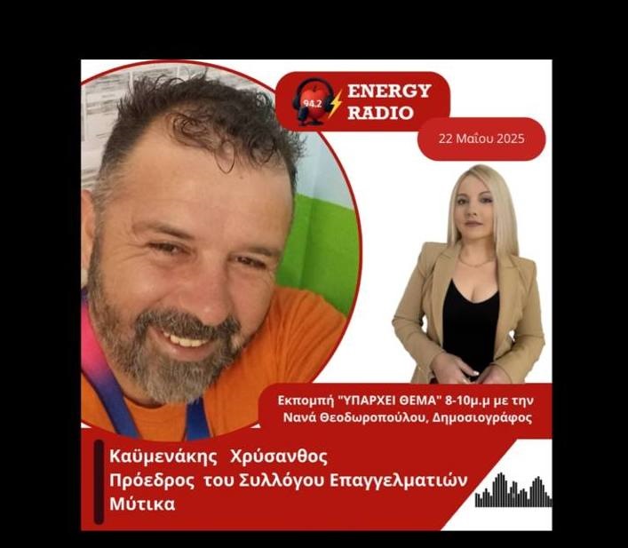 Ο Πρόεδρος του Συλλόγου Επαγγελματιών Μύτικα, Καϋμενάκης Χρύσανθος σε συνέντευξή του στην δημοσιογράφο Νανά Θεοδωροπούλου, στην εκπομπή «ΥΠΑΡΧΕΙ ΘΕΜΑ» στον Energy 94.2 μίλησε για τις προοπτικές τουριστικής ανάπτυξης στην πανέμορφη περιοχή της Αλυζίας καθώς και τις υποδομές αναβάθμισης,διαμόρφωσης κλπ , όπως αυτές ιεραρχήθηκαν βάσει της σπουδαιότητας από τον Σύλλογο