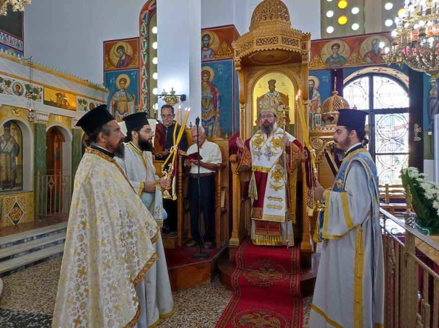 Με τον Σεβασμιώτατο συλλειτούργησαν ο Εφημέριος του Ναού, π. Γεώργιος Παναγιόπουλος, ο Αρχιδιάκονος Στέφανος Καππές και ο Διάκονος Δημήτριος Λαγούδης.