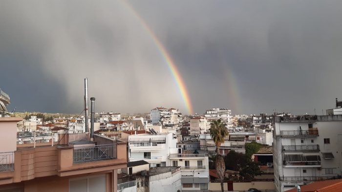 Μετά την βροχή ξεπρόβαλε ένα εντυπωσιακό και μεγάλο ουράνιο τόξο.