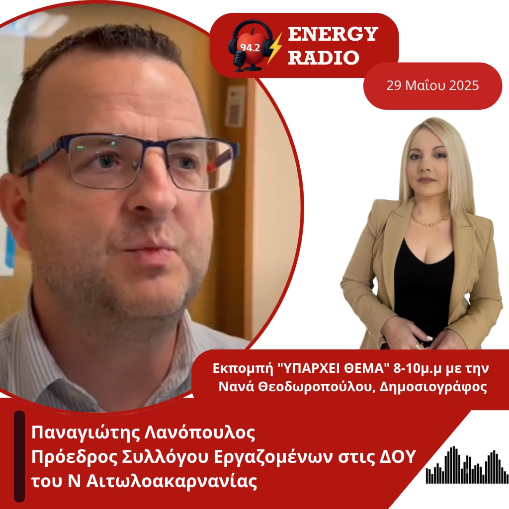 Ο Παναγιώτης Λανόπουλος, Πρόεδρος του Συλλόγου Εργαζομένων στις ΔΟΥ του Ν Αιτωλοακαρνανίας σε συνέντευξή του στην δημοσιογράφο Νανά Θεοδωροπούλου, στην εκπομπή «ΥΠΑΡΧΕΙ ΘΕΜΑ» στον Energy 94.2 αναφέρθηκε στην επιχειρούμενη από την ΑΑΔΕ «κεντρικοποίηση» των Εφοριών που, όπως είπε, το ενδεχόμενο αυτό θα έχει αρνητικά αποτελέσματα και θα φέρει δυσκολίες, τόσο σε εργαζόμενους όσο και σε άλλου κλάδους, όπως εμπόρους, λογιστές κ.τ.λ αλλά και για το σύνολο των πολιτών.