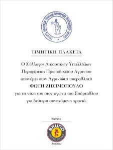 Έγινε σήμερα η βράβευση από τον Σύλλογο Δικαστικών Υπαλλήλων Περιφέρειας Αγρινίου στον δύο φορές νικητή του Σπάρταθλου. Φίλε Φώτη ο Θεός να σου δίνει υγεία και να είσαι το παράδειγμα για όλους.