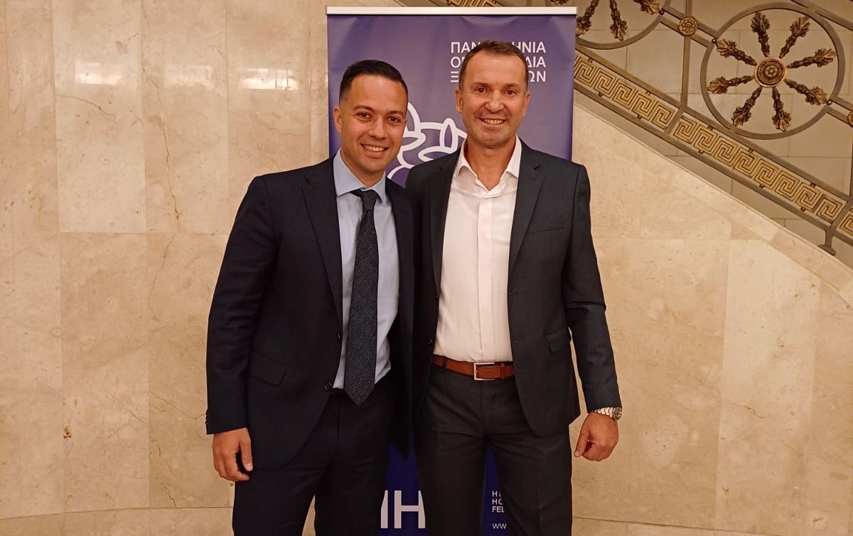 Στη φωτογραφία ο πρόεδρος της Ένωσης Ξενοδόχων Αιτωλοακαρνανίας Βασίλης Τσάρκος με τον πρόεδρο της Πανελλήνιας Ομοσπονδίας Ξενοδόχων Γιάννη Χατζή.