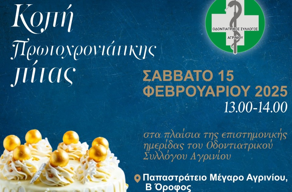 Το Σάββατο 15/02/2025 θα πραγματοποιηθεί ημερίδα του Οδοντιατρικού Συλλόγου Αγρινίου με θέμα «Ακτινοδιάγνωση της ψηφιακής τεχνολογίας στην σύγχρονη οδοντιατρική πράξη».