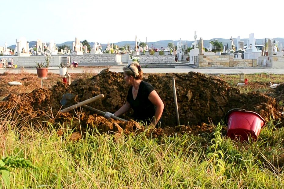 Βρισκόμασταν σε ένα απέραντο τοπίο νεκροταφείου. Οι δυο γυναίκες αναφέρουν στο ντοκιμαντέρ ότι το νεκροταφείο Αγρινίου είναι το δεύτερο ή τρίτο μεγαλύτερο της χώρας. Είναι πράγματι ένα τεράστιο νεκροταφείο, σχεδόν αχανές. Δούλευαν μαζί για περισσότερο από δέκα χρόνια.