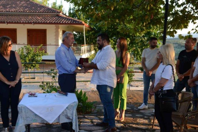 Ο Δήμαρχος Θέρμου κ. Σπύρος Κωνσταντάρας, παρέδωσε αναμνηστικό του Δήμου Θέρμου στον κ. Κώστα Τρομάρα, γιο του Θρυλικού παλαιστή.