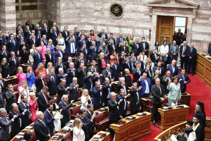 Νωρίς το απόγευμα της Κυριακής ολοκληρώθηκε η ορκωμοσία των 300 της Βουλής που προέκυψε από την εκλογική αναμέτρηση της 21ης Μαϊου. Τα θεωρεία της Βουλής ήταν ασφυκτικά γεμάτα από συγγενείς και προσκεκλημένους, μεταξύ των οποίων, πρέσβεις και επιτετραμμένοι πρεσβειών από εξήντα χώρες από όλο τον κόσμο, ενώ η τελετή πραγματοποιήθηκε παρουσία των στελεχών της υπηρεσιακής κυβέρνησης, της Προέδρου της Δημοκρατίας Κατερίνας Σακελλαρόπουλου και του αρχιεπισκόπου Αθηνών.