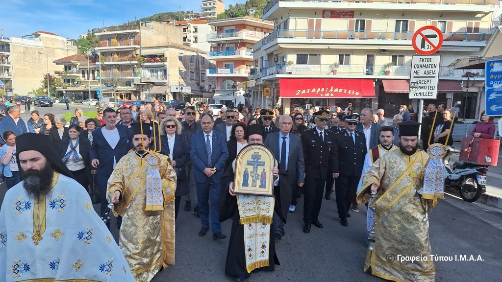 Η υποδοχή έλαβε χώρα στην κεντρική πλατεία της Αμφιλοχίας και στη συνέχεια με λιτανευτική πομπή το Τίμιο Ξύλο μεταφέρθηκε στον Ιερό Ναό, όπου τελέσθηκε η ακολουθία του Αρχιερατικού Εσπερινού, χοροστατούντος του Σεβασμιωτάτου Ποιμενάρχου μας κ. Δαμασκηνού.