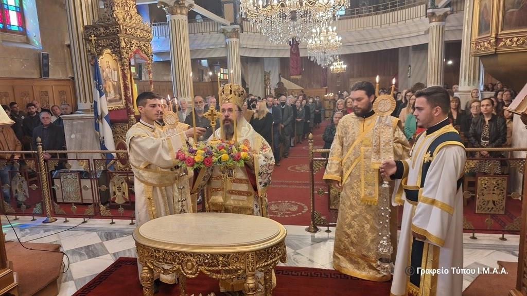 Το πρωί της Κυριακής τελέσθηκαν η Ακολουθία του Όρθρου και η Αρχιερατική Θεία Λειτουργία, προεξάρχοντος του Σεβασμιωτάτου Μητροπολίτου Αιτωλίας και Ακαρνανίας κ. Δαμασκηνού.
