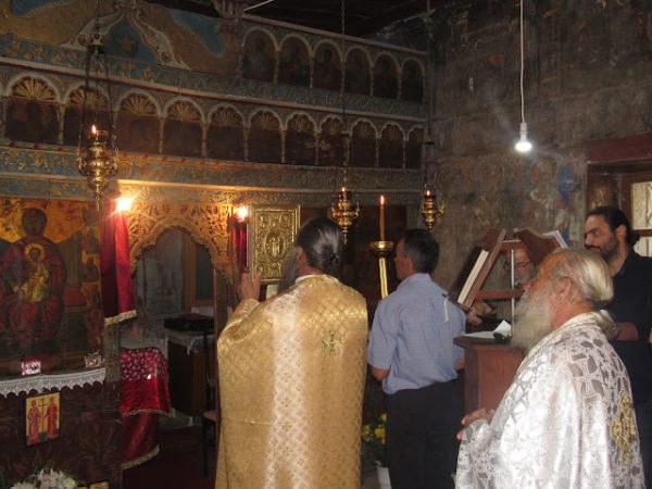 Νωρίς το πρωί τελέστηκε η πανηγυρική Θεία Λειτουργία, ιερουργούντων των π. Ηλία Βανάκα και π. Ευσταθίου Καραδήμα.