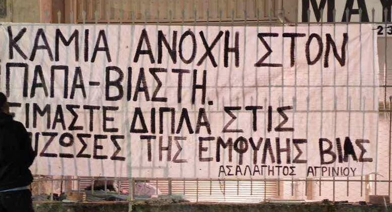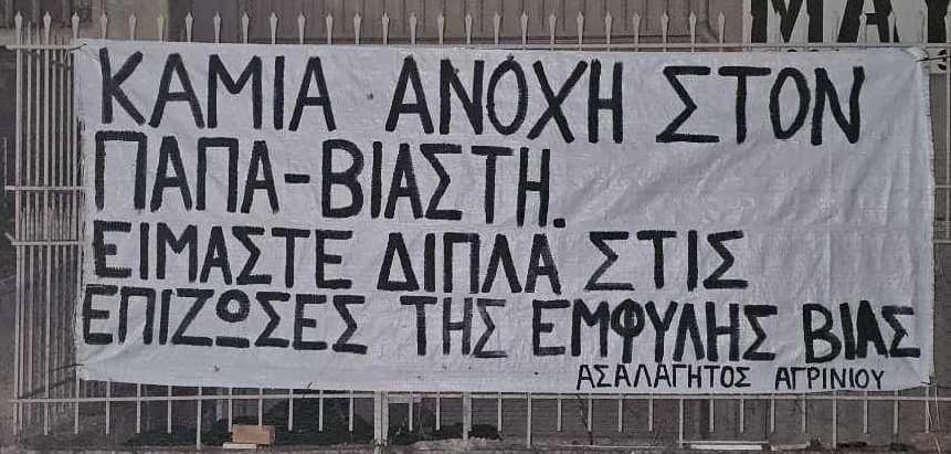 Χθες αναρτήσαμε πανό έξω από τα δικαστήρια Αγρινίου ως ελάχιστη ένδειξη αλληλεγγύης στις καταγγέλλουσες και επιζώσες της έμφυλης βίας και των πολλαπλών κακοποιήσεων του παπά-βιαστή με αφορμή τη δίκη του σε δεύτερο βαθμό (πρωτοδίκως έχει καταδικαστεί σε 27 χρόνια κάθειρξη για βιασμούς, ασέλγεια κατά συρροή και παιδική πορνογραφία σε βάρος τριών ανήλικων κοριτσιών). Η υπόθεση πήρε αναβολή για 27/02 /2025. Τη στιγμή που απολύεται κόσμος και χάνει τις δουλείες τους με το παραμικρό, ο εν λόγω παπάς μισθοδοτείται ακόμα κάτι που δείχνει περίτρανα τη βαθιά σήψη και το μισογυνισμό της Εκκλησιάς Α.Ε και του κράτους.