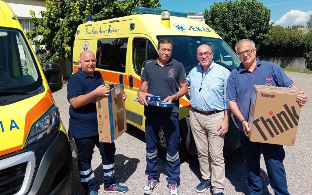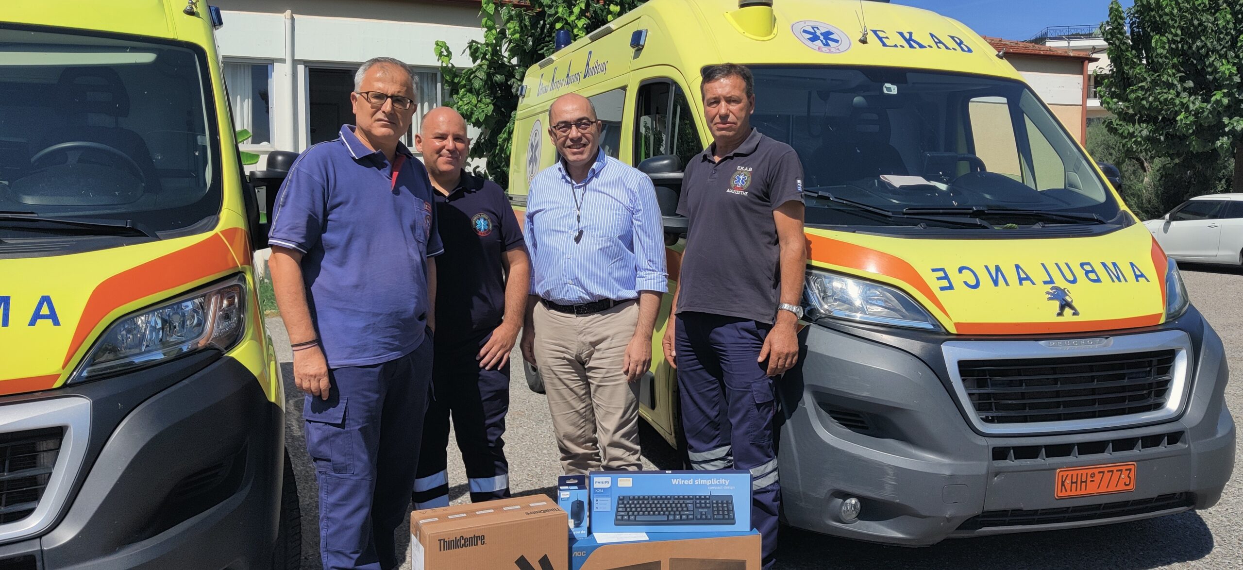 Επειδή όμως είμαι άνθρωπος που δίνει άμεσα λύσεις παρέδωσα σήμεραστο ΕΚΑΒ έναν νέο σύγχρονο Ηλεκτρονικό Υπολογιστή ως ελάχιστο φόροτιμής για τους ανθρώπους που δουλεύουν για την Ζωή μας!!!