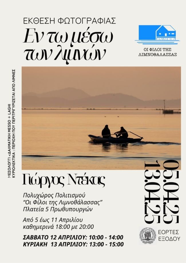 Ο Δήμος Ιερής Πόλης Μεσολογγίου ενημερώνει ότι, μετά την πρωτοφανή επισκεψιμότητα της έκθεσης φωτογραφίας που οργανώνει ο Σύλλογος «Οι Φίλοι της Λιμνοθάλασσας» με τίτλο «Εν τω μέσω των λιμνών», του βραβευμένου φωτογράφου Γιώργου Ντέκα, παρατείνεται η διάρκεια της έκθεσης για το Σαββατοκύριακο των Βαΐων, 13 και 14 Απριλίου.