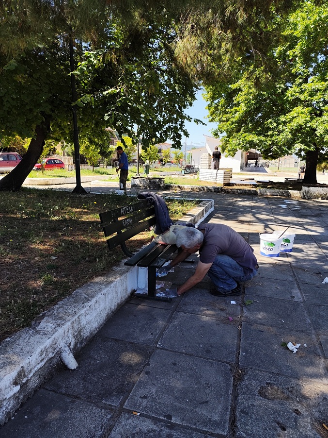 Συνεργεία της Τεχνικής Υπηρεσίας έβαψαν τα παρτέρια για να ομορφύνει ο χώρος σε όλο το εύρος της πλατείας. Επιπλέον καλλωπίστηκαν τα παγκάκια και ο χώρος πέριξ της πλατείας με την επίβλεψη του Αντιδημάρχου Γιάννη Βασιλείου και του προέδρου της Κοινότητας Αγρινίου Κώστα Μποκώρου.