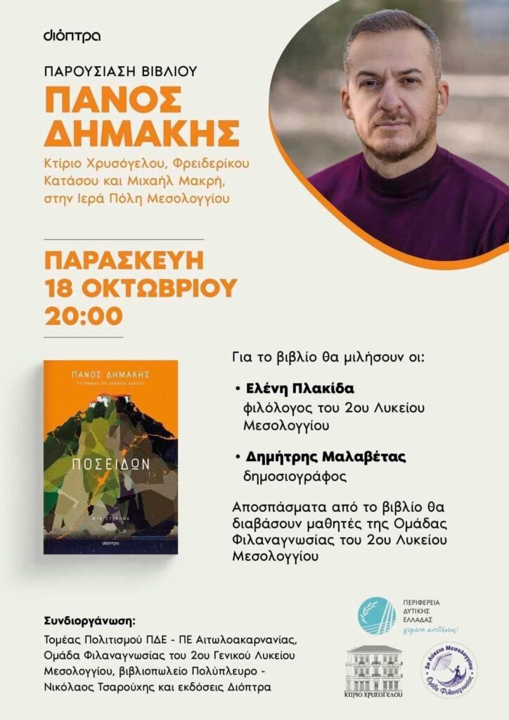 Σας προσκαλούμε στην παρουσίαση βιβλίου του Πάνου Δημάκη “ΠΟΣΕΙΔΩΝ”, που θα πραγματοποιηθεί στο Κτίριο Χρυσόγελου την Παρασκευή 18 Οκτωβρίου στις 20:00 μμ.